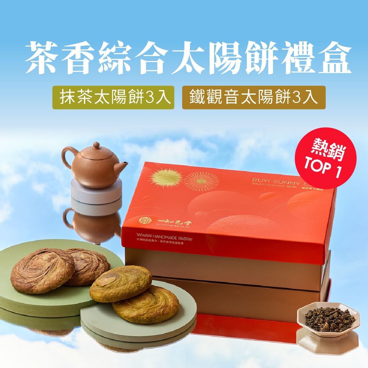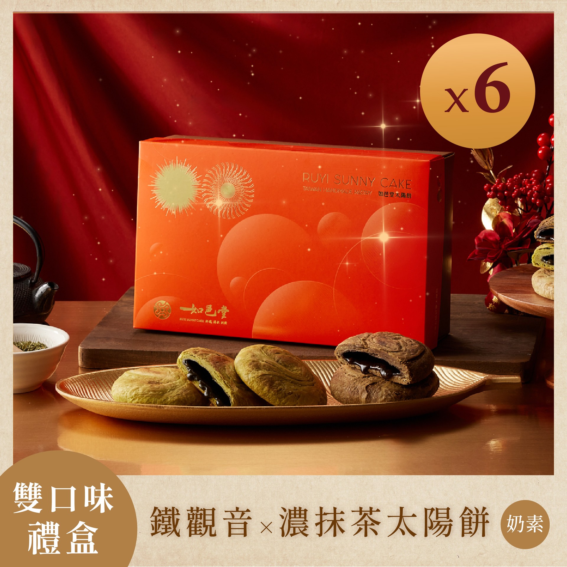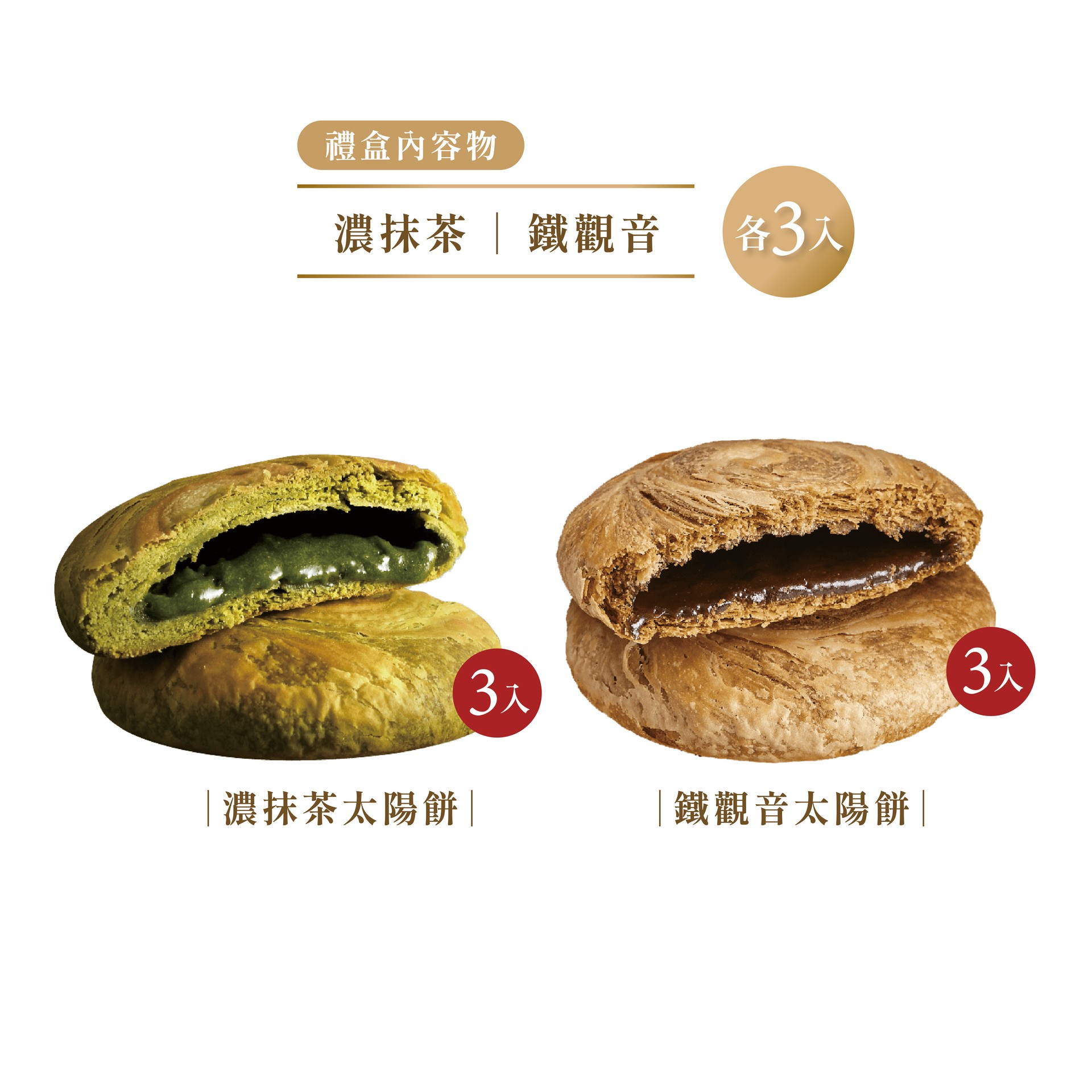 如邑堂 茶香(濃抹茶&鐵觀音) 綜合雙口味太陽餅6入x 2盒(食用期 2025-10-18)
