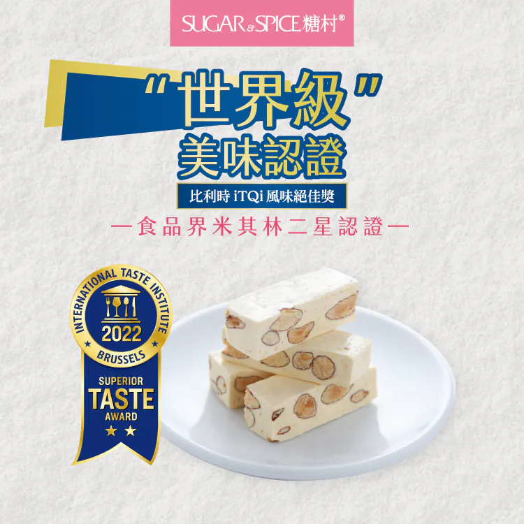 法式牛軋糖: 榮獲食品界米其林-比利時iTQi風味絕佳獎殊榮 嚴選飽滿香脆的杏仁果,口感Q彈不黏牙,散發出濃濃奶香味,男女老少都喜歡! 抹茶牛軋糖: 嚴選日本百年老鋪的極上抹茶x暢銷 150 國家的法國奶油,搭配美國頂級杏仁果,呈現濃郁的茶韻清香,在口中回甘的美好滋味。 草莓牛軋糖: 滿口香濃的草莓味,搭配草莓製成的果乾,充滿美味的幸福滋味! 重量:250g 榮獲食品界米其林-比利時iTQi風味絕佳獎殊榮 獲選「全世界最好吃零食 TOP 10 」 獲選「來台必買伴手禮 TOP 1 」 金馬獎指定糖村伴手禮