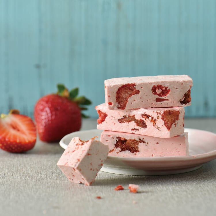 內容物: 1 法式牛軋糖8入 2 抹茶牛軋糖8入 3 草莓牛軋糖8入 法式牛軋糖: 榮獲食品界米其林-比利時iTQi風味絕佳獎殊榮 嚴選飽滿香脆的杏仁果,口感Q彈不黏牙,散發出濃濃奶香味,男女老少都喜歡! 抹茶牛軋糖: 嚴選日本百年老鋪的極上抹茶x暢銷 150 國家的法國奶油,搭配美國頂級杏仁果,呈現濃郁的茶韻清香,在口中回甘的美好滋味。 草莓牛軋糖: 滿口香濃的草莓味,搭配草莓製成的果乾,充滿美味的幸福滋味! 重量:340g 禮盒尺寸:32.8×9.5×6.1cm (長×寬×高) 「超人氣夢幻牛軋糖」的秘密? 1 嚴選純粹的原料 – 採用優質法國牛奶製成的奶油,雖然少了香精,讓香氣無法長久維持,但更吃得到醇濃奶香。 2 火侯的精準掌握 – 嚴選飽滿的美國A+杏仁果,低溫烘烤三小時後,再高溫烘烤鎖住色澤與香氣。讓杏仁果色澤金黃飽滿、香氣濃郁。 3 時間的精算控制 – 煮糖溫度與時間控制的恰到好處,讓牛軋糖軟硬適中、充滿Q彈口感。 這就是糖村超人氣夢幻牛軋糖 4 糖村牛軋糖堅持不加固化劑、防腐劑,因此產品會隨放置地點的溫度而改變產品外形及軟硬度;溫度低則會變硬易碎,這是正常物理現象,請放心食用。 5 建議冷藏保存,由冰箱取出後,請置於常溫5-10分鐘後,即可品嚐!